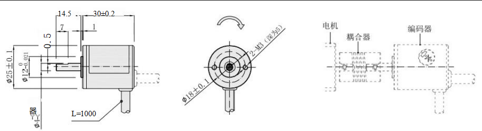 增量式(实心轴)● 特 点:小型,结构紧凑,耐用● 应用范围:微型电机、小型仪器等自动化控制● 外形尺寸:外径φ25mm, 厚度为30mm, 轴径φ4mm(D型口)● 分辨率:可达2500P/R● 电源电压:DC5V;DC8-30V● 防护等级:IP50● 线 长:1000mm● 重 量:约50g
